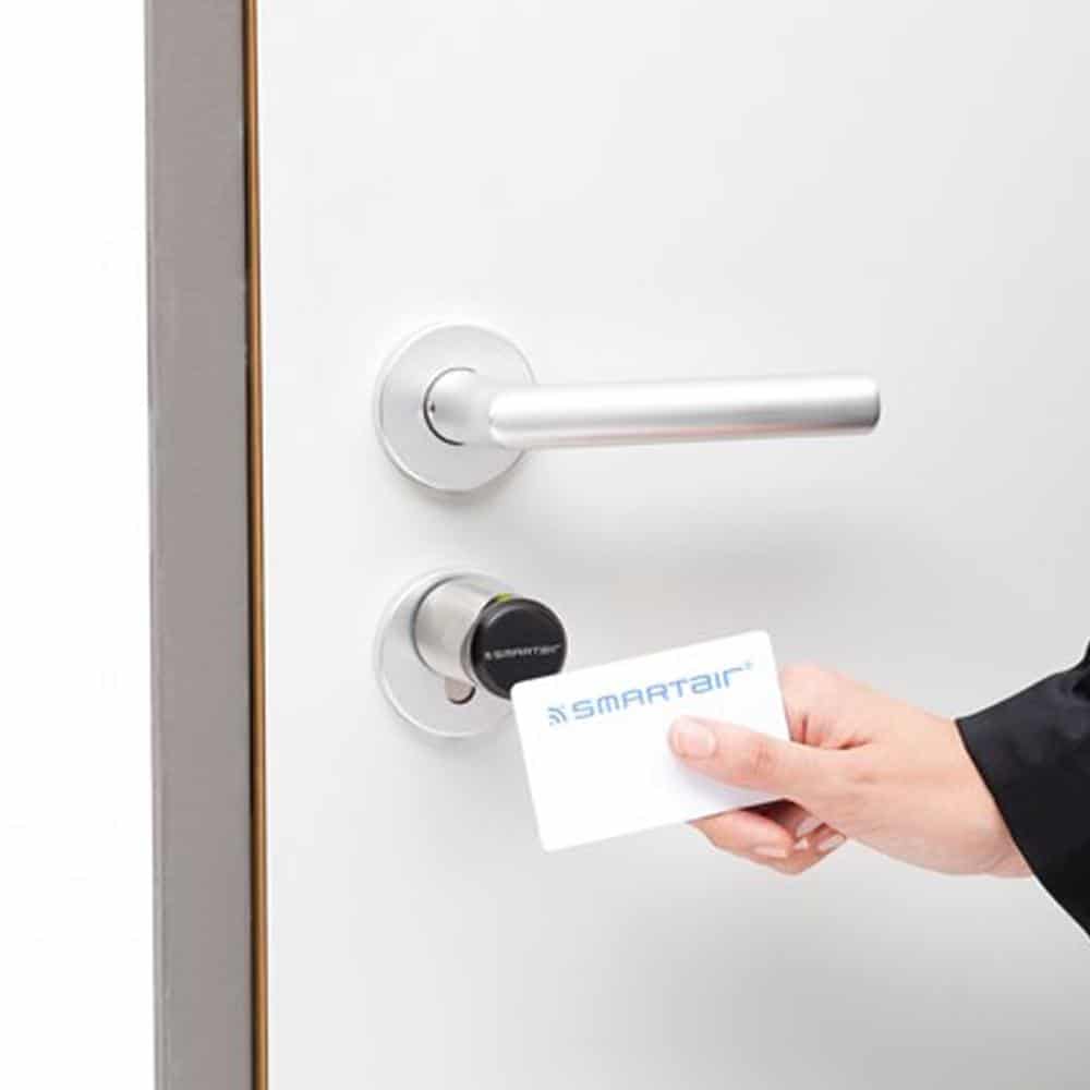 Οι Ηλεκτρονικοί Κύλινδροι SMARTAIR είναι ιδανικοί για πόρτες γραφείων και αίθουσες συνεδριάσεων και όπως οι ηλεκτρονικές χειρολαβές είναι ασύρματοι με μπαταρία. Οι κύλινδροι είναι κατάλληλοι για γυάλινες πόρτες έχουν αναγνώστη RFID (πράσινο/ κόκκινο σήμα) σε απόσταση 2-4cm ανάγνωση/γραφή.