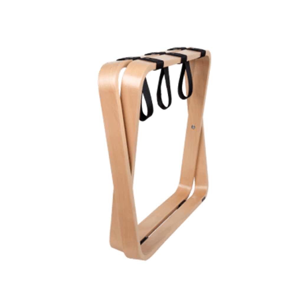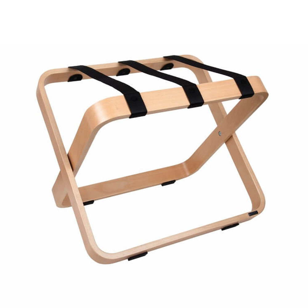 The curvy luggage rack owes its name to its round shapes. This attractive and uniquely designed luggage rack is made of high-quality beech wood (‘Bentwood’) and is a real eye-catcher for your hotel rooms. With 3 strong nylon straps, this luggage rack can easily carry heavy trolleys and suitcases.