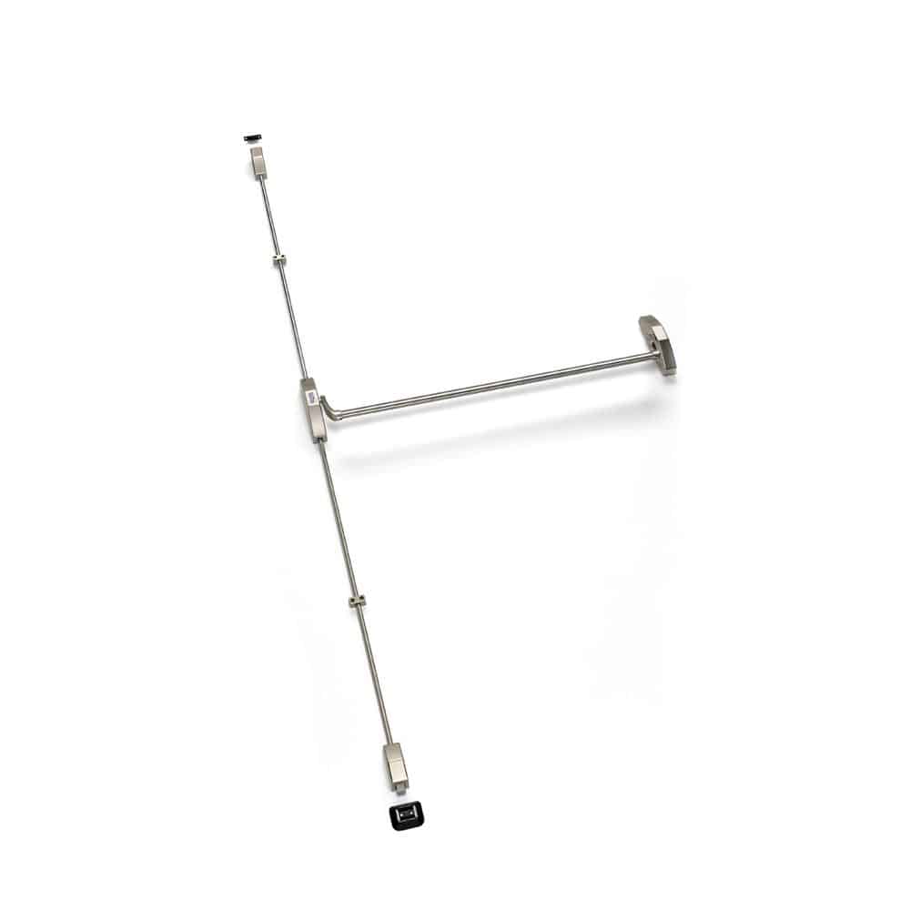 Rim panic devices with 2 locking points, upper and lower. Steel swing latches.Standard height: 2210mm. Outside devices. EN 1125 certification: