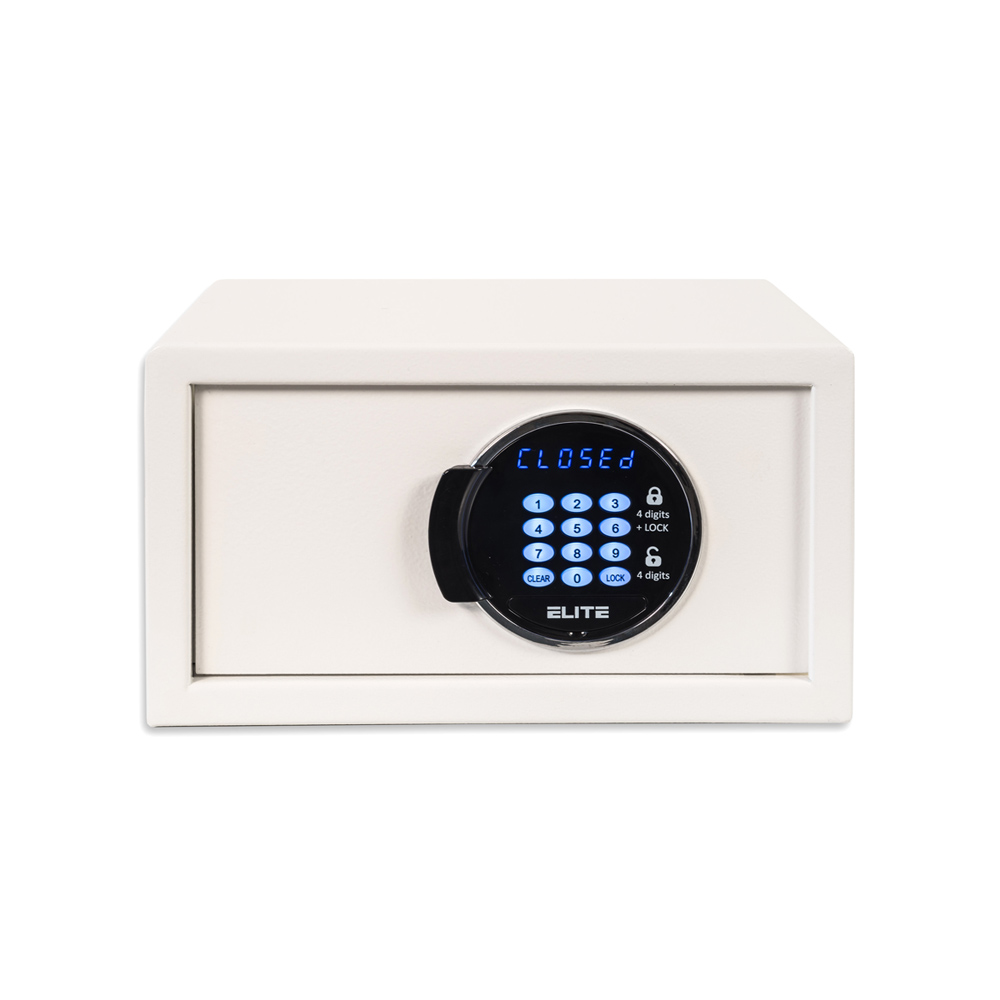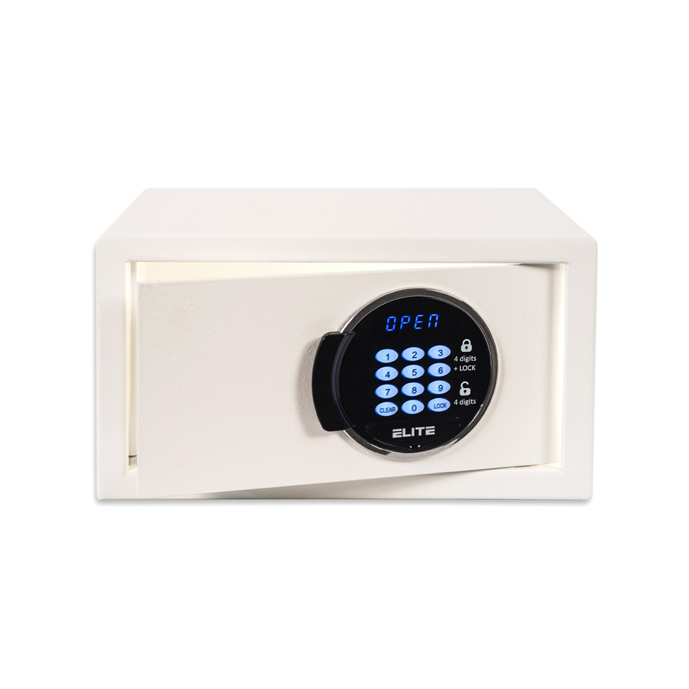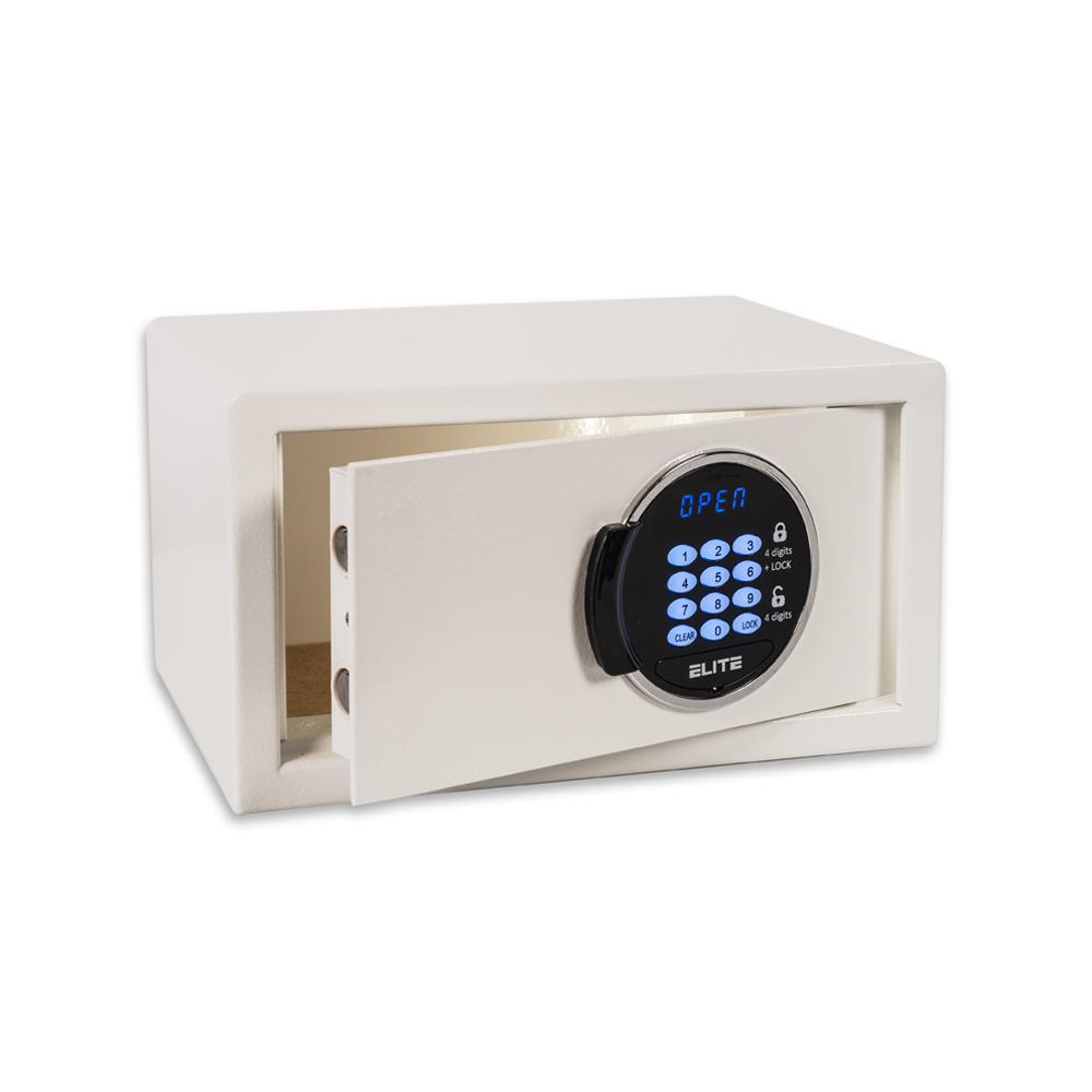 - Motorized electronic hotel safe.