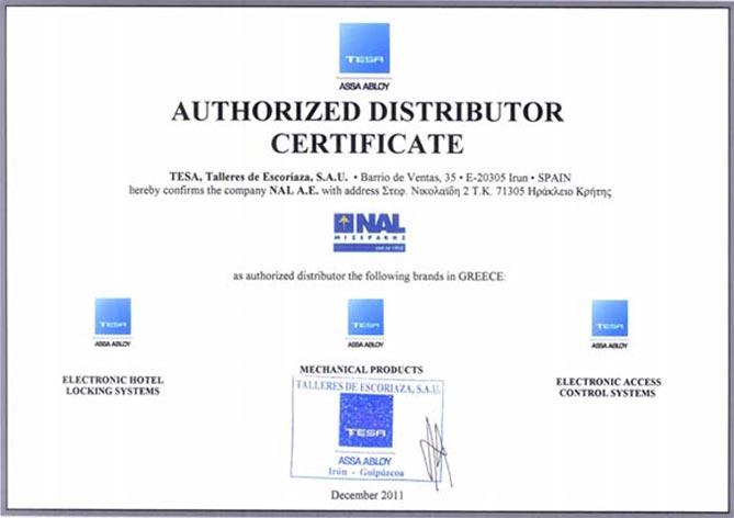 TESA Assa Abloy confirms that the Nal S.A is the only officially certified company in Greece that sells and supports its products.